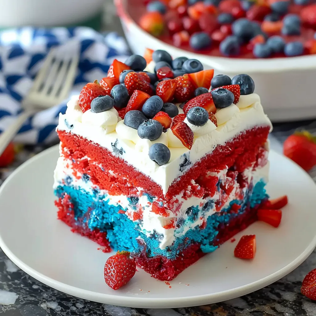 This 4th of July Patriotic Poke Cake is not just any cake; it’s a celebration on its own! Not only is it visually stunning, with bold colors that scream patriotism, but it also boasts a moist and flavorful texture that everyone will love. Perfect for gatherings, this cake is easy to prepare and requires minimal cooking skills. With just a few simple ingredients, you can whip up a dessert that will have your guests complimenting you long after the last firework has faded.