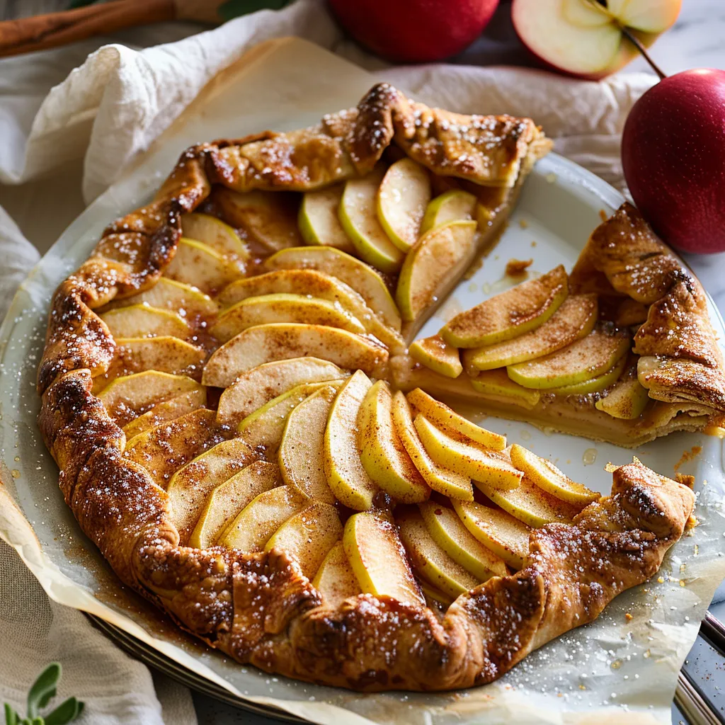 Let me paint you a picture of what you can expect. This galette is like autumn on a plate—sweet, tart apples basking in a symphony of warm spices. The crust is exquisitely flaky, with a faint nutty flavor from the butter and a hint of sweetness that gently cradles the apples. Each bite results in a dance of textures—the crispness of the crust meets the tender, spiced apples, creating something that’s truly comforting. Imagine wrapping your hands around a warm slice while the outer world carries the chill of the season, the delightful aroma filling your home like a cozy blanket. It’s honestly like receiving a little gift from your kitchen every time you take a forkful.