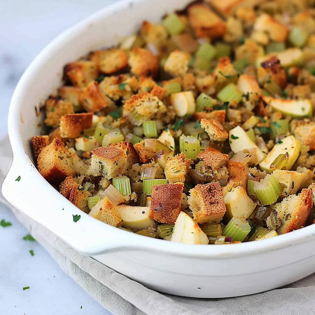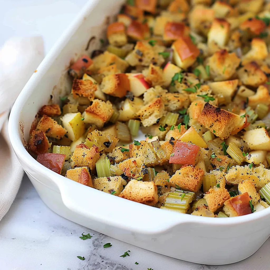 This stuffing is a harmonious blend of sweet and savory flavors that create an inviting taste experience. The apples provide a pleasant sweetness, which brilliantly contrasts with the earthiness of the sautéed onions and celery. The touch of herbs and spices adds layers of complexity without overwhelming any of the core flavors. Imagine sinking your fork into a warm, aromatic dish that makes your taste buds dance—all the while transporting you back to happy gatherings with family and friends.