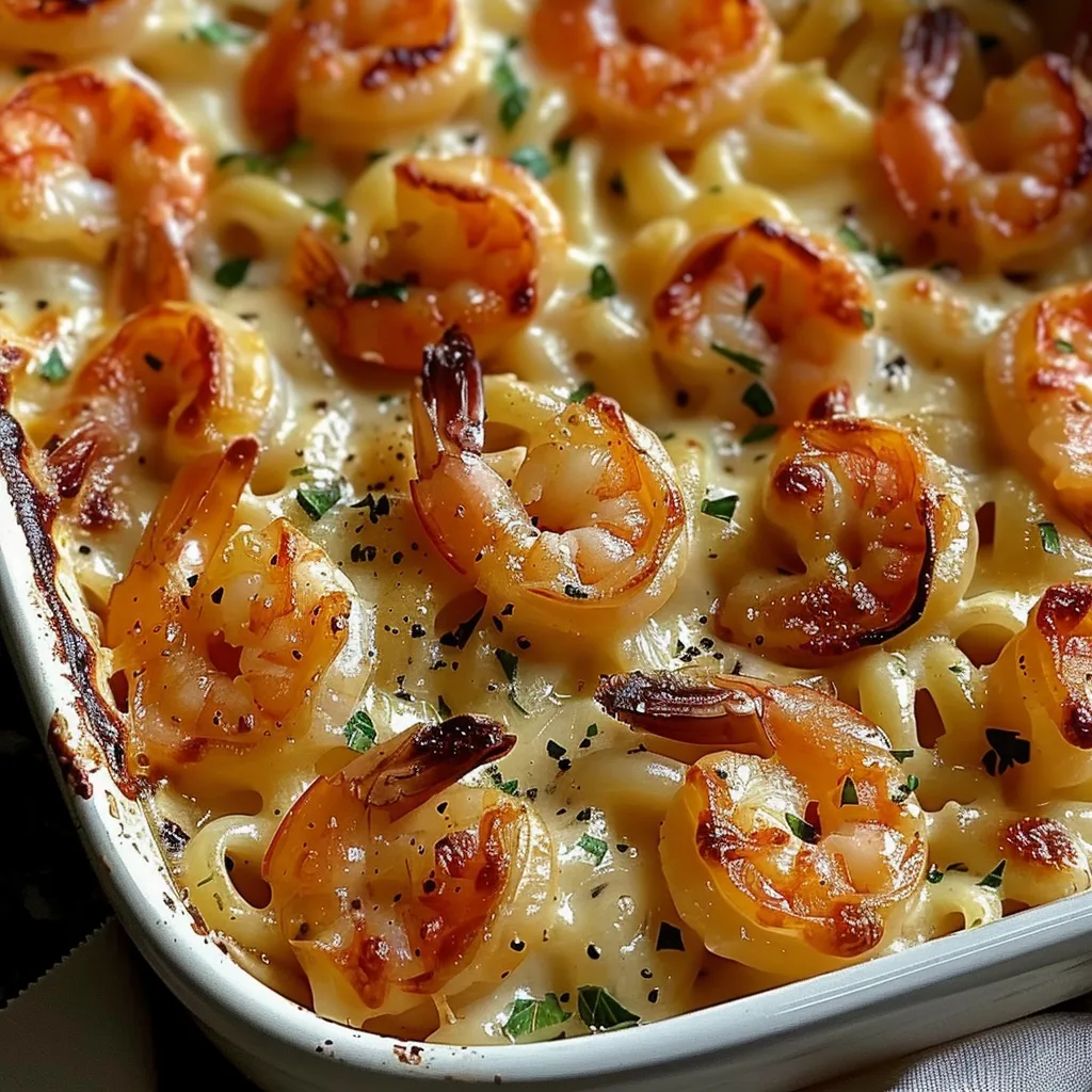 - Bake in the preheated oven for about 15-20 minutes, or until the shrimp are cooked through and the top is bubbly and golden.