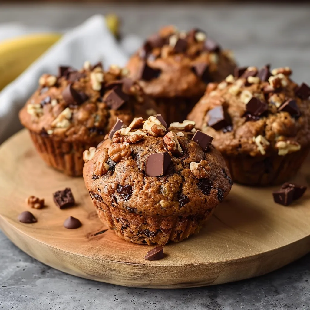 Warm, fluffy, and indulgent muffins infused with sweet bananas and rich chocolate chunks, perfect for breakfast or a snack.
