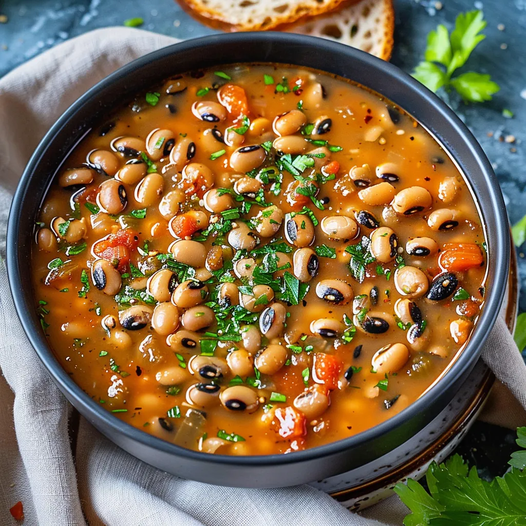 A warm bowl of Black Eyed Pea Soup that combines rustic charm with nourishing ingredients, perfect for cozy evenings.