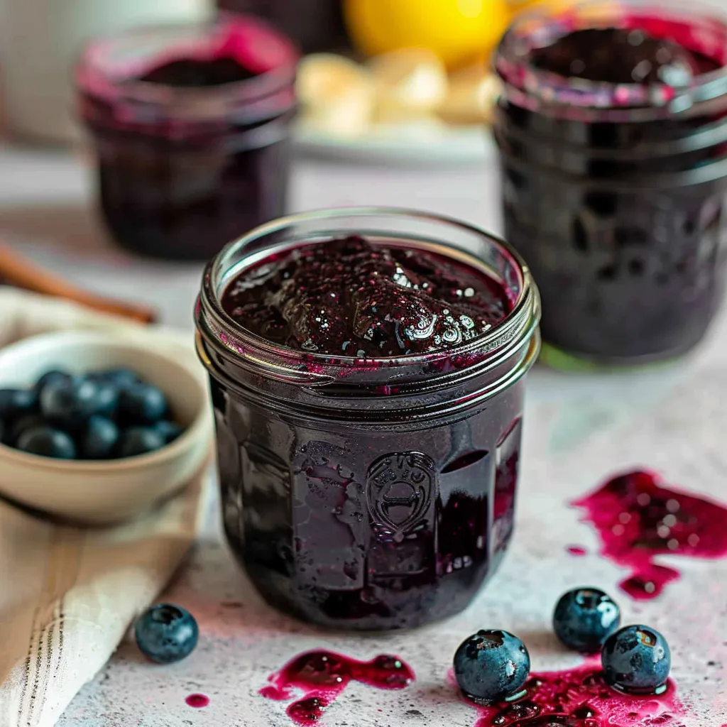 A delicious homemade blueberry jam infused with vanilla, perfect for spreading on toast or gifting to friends.