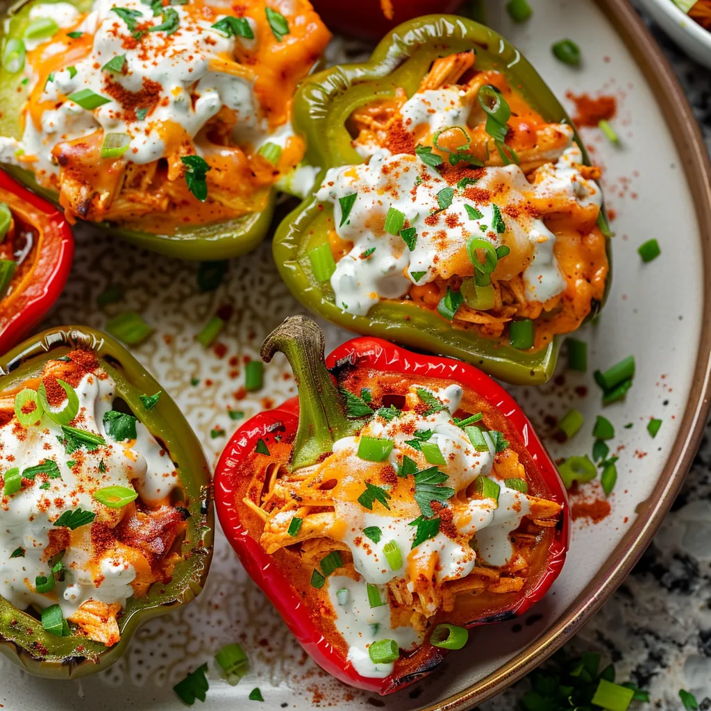 Discover an easy recipe for Buffalo Chicken Stuffed Peppers Perfect for quick meals packed with flavor and satisfying your cravings