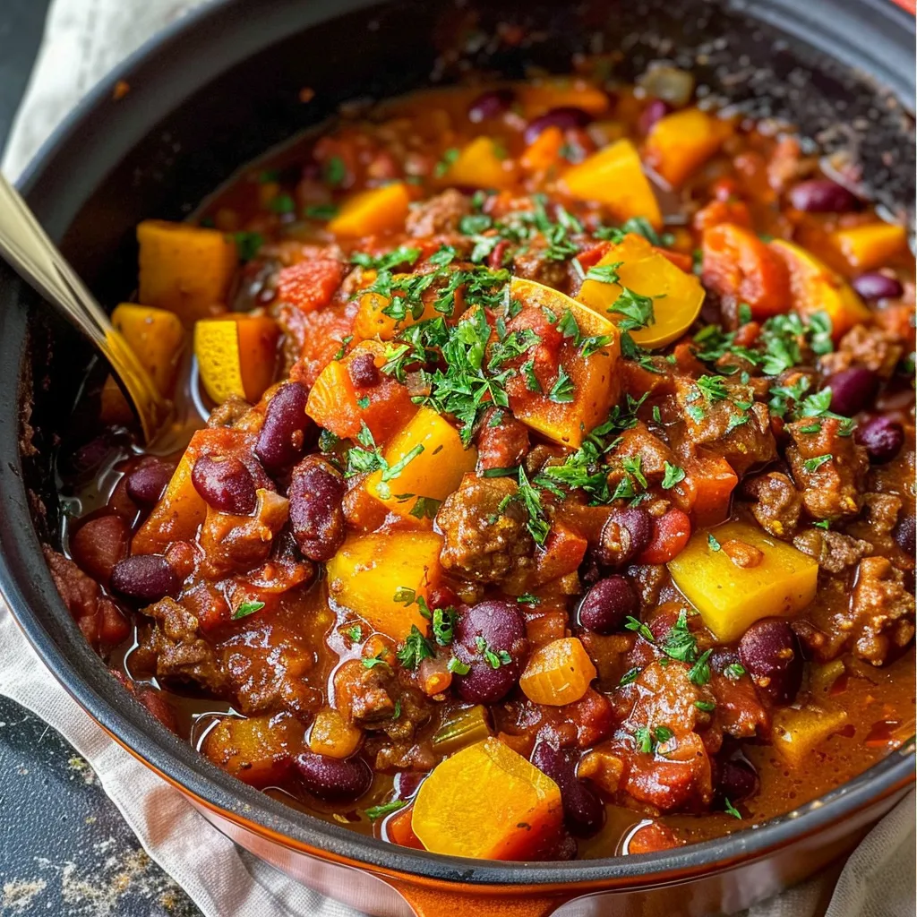 Savor a Delicious Butternut Squash Chili with Turkey or Beef Recipe thats hearty nutritious and perfect for cozy dinners Enjoy unique flavors