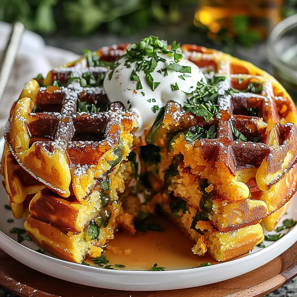 Spicy Cheddar Jalapeo Cornbread Waffles recipe that combines flavor and texture Perfect for brunch or a flavorful twist any time Enjoy unique taste