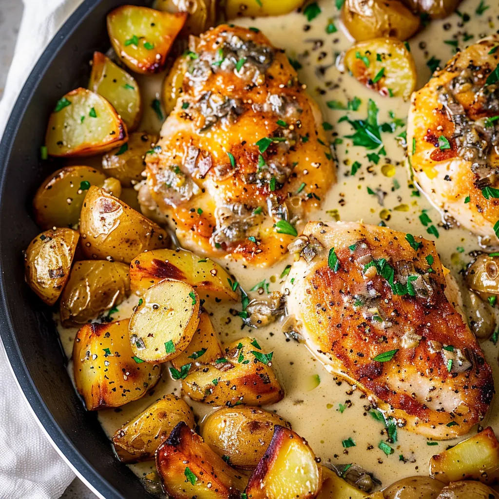 A comforting dish featuring tender chicken, buttery potatoes, and a creamy Dijon sauce that’s perfect for family gatherings or a weeknight dinner.