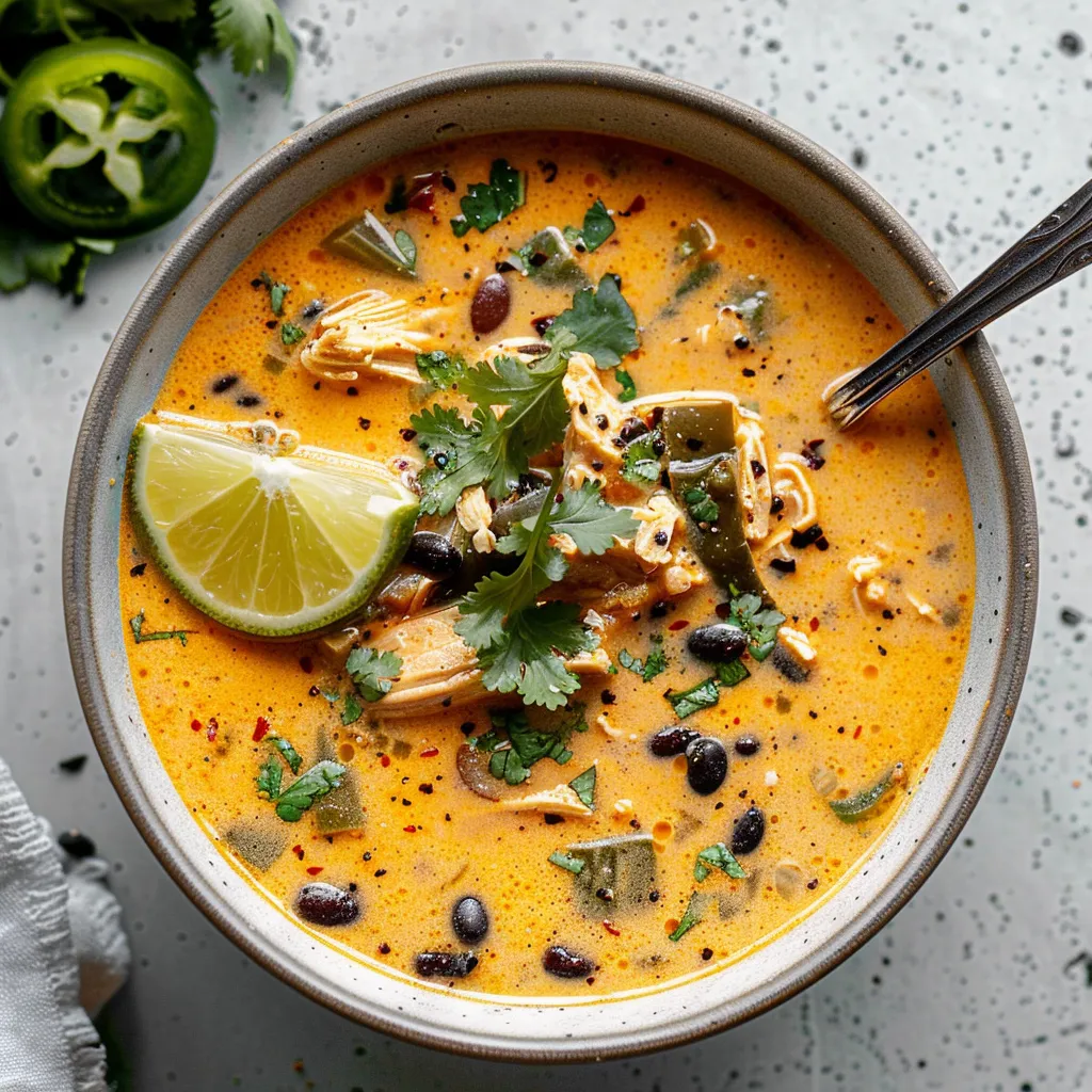 Imagine a bowl filled with deep earthy notes from the black beans, complemented by the subtle heat of roasted poblanos and the comforting essence of chicken. Each spoonful is a blend of textures and flavors, where the creaminess of the beans meets the tender chunks of chicken. The broth, seasoned with spices like cumin and oregano, creates an aromatic experience that dances on the palate, making every bite an inviting encounter. Topped with fresh cilantro and a squeeze of lime, this soup strikes a perfect balance between savory and refreshing.