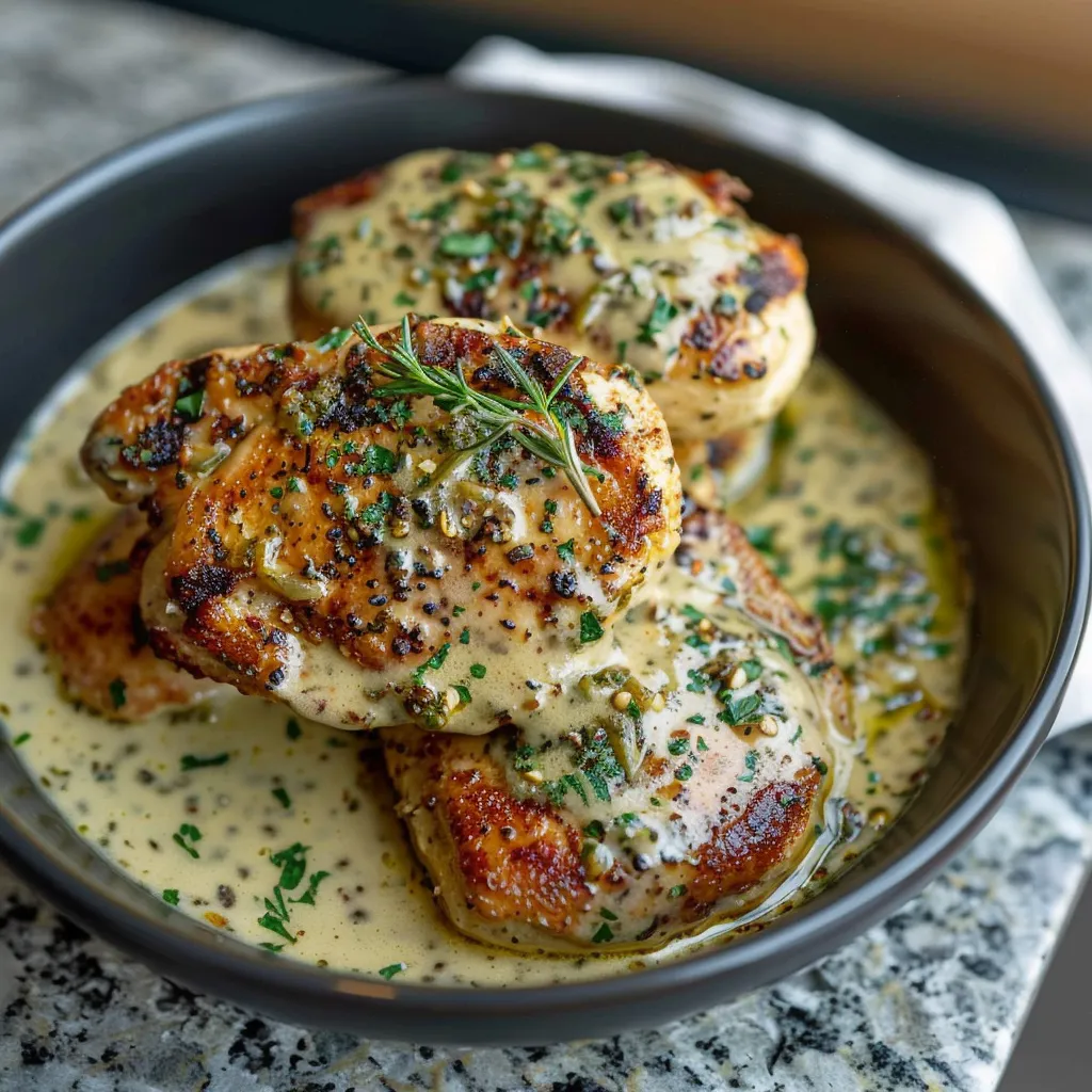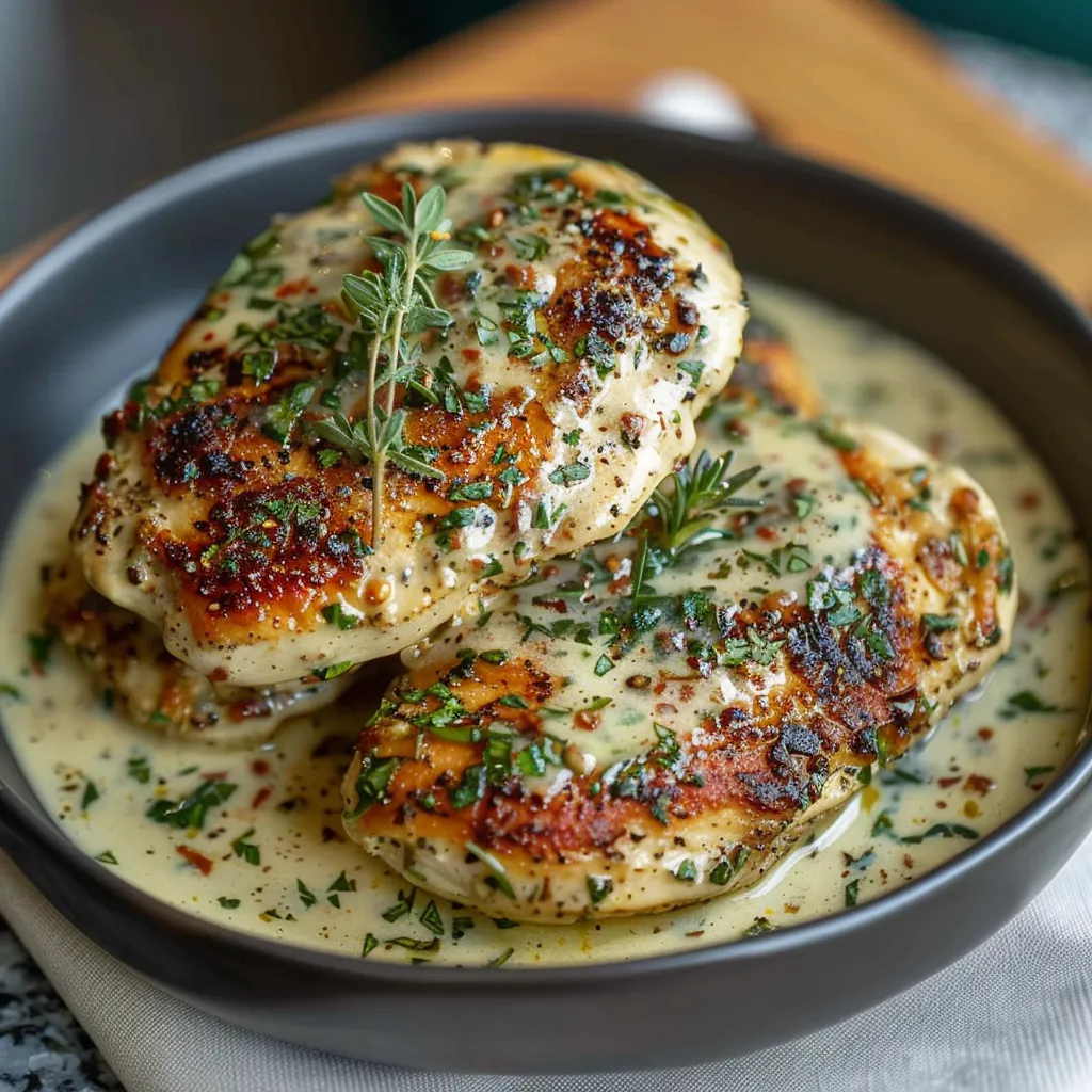 A comforting and easy Chicken with Boursin Sauce featuring rich garlic and herb flavors, perfect for impressing guests or a cozy night in.