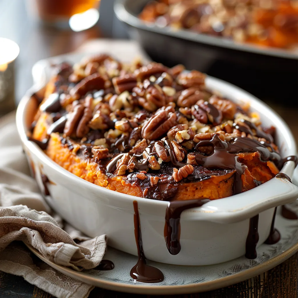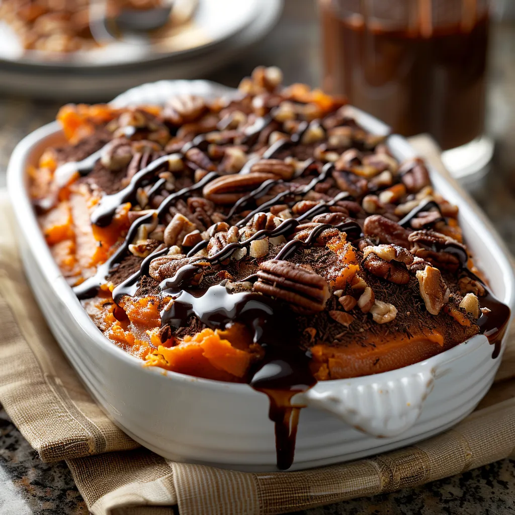 Savor this irresistible ChocolatePecan Sweet Potato Casserole recipe Perfect blend of flavors for your next gathering or holiday feast