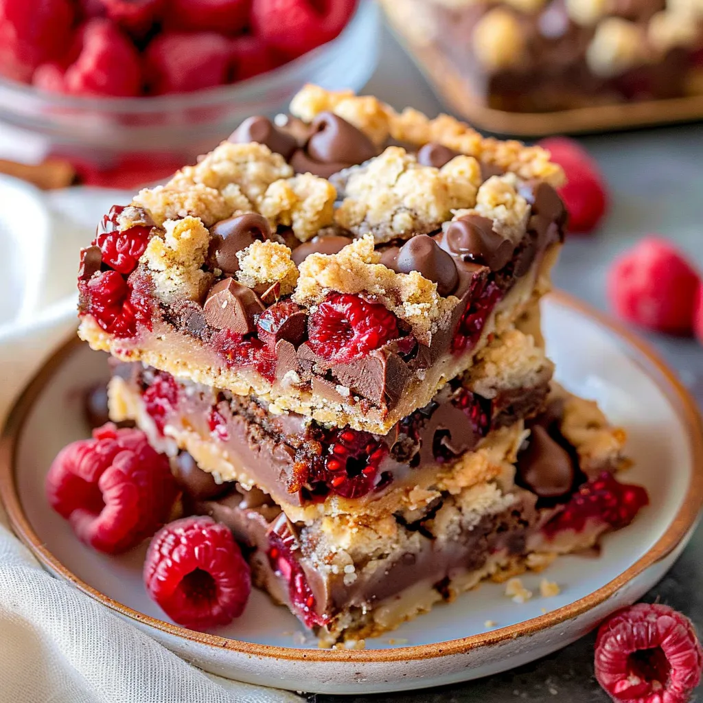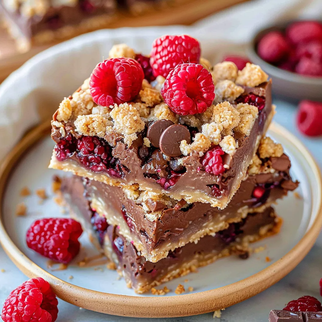 Savor the rich flavors of chocolate and tart raspberries in these crumb bars. Perfect for dessert lovers seeking a delightful treat!