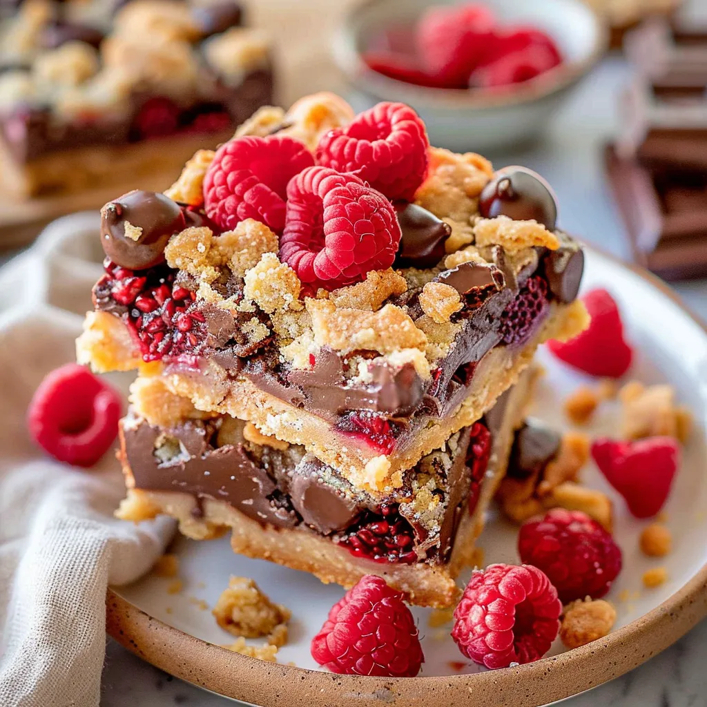 Delightful Chocolate Raspberry Crumb Bars that are perfect for sharing at gatherings or enjoying during a cozy night in. These bars are a warm hug in dessert form, combining gooey chocolate, tart raspberries, and a crumbly texture.