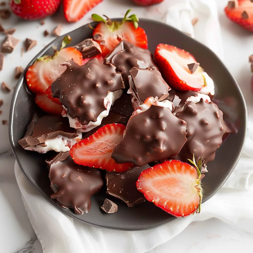 Chocolate Strawberry Yogurt Clusters are simple yet decadent treats combining creamy Greek yogurt, fresh strawberries, and rich dark chocolate, ideal for any occasion.