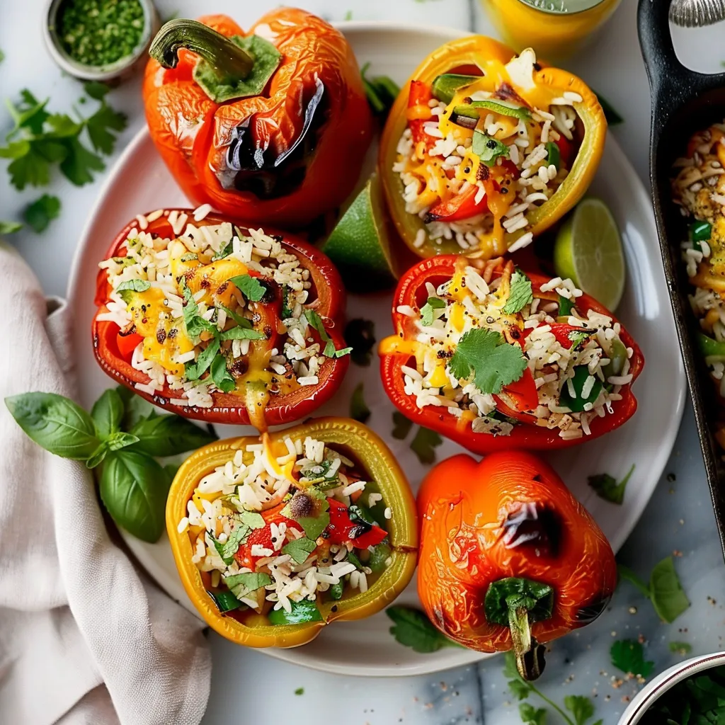 - Garnish and serve: Once done, allow the peppers to cool slightly before garnishing with fresh lime wedges, green onions, and avocado slices. Serve warm.