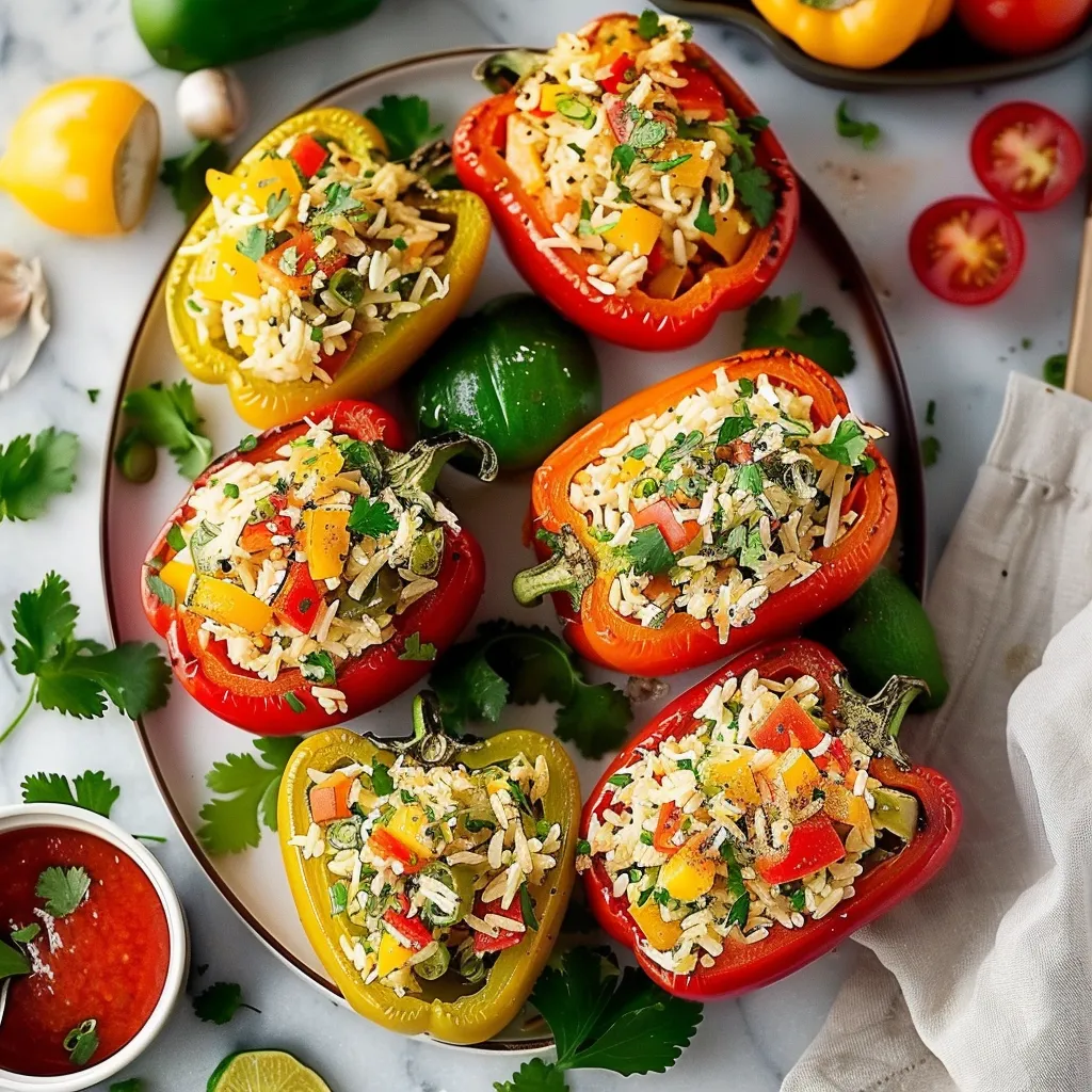 - 4 large bell peppers: Vibrantly colored, they not only serve as the vessel for the rice but also contribute a slight crunch and sweetness.