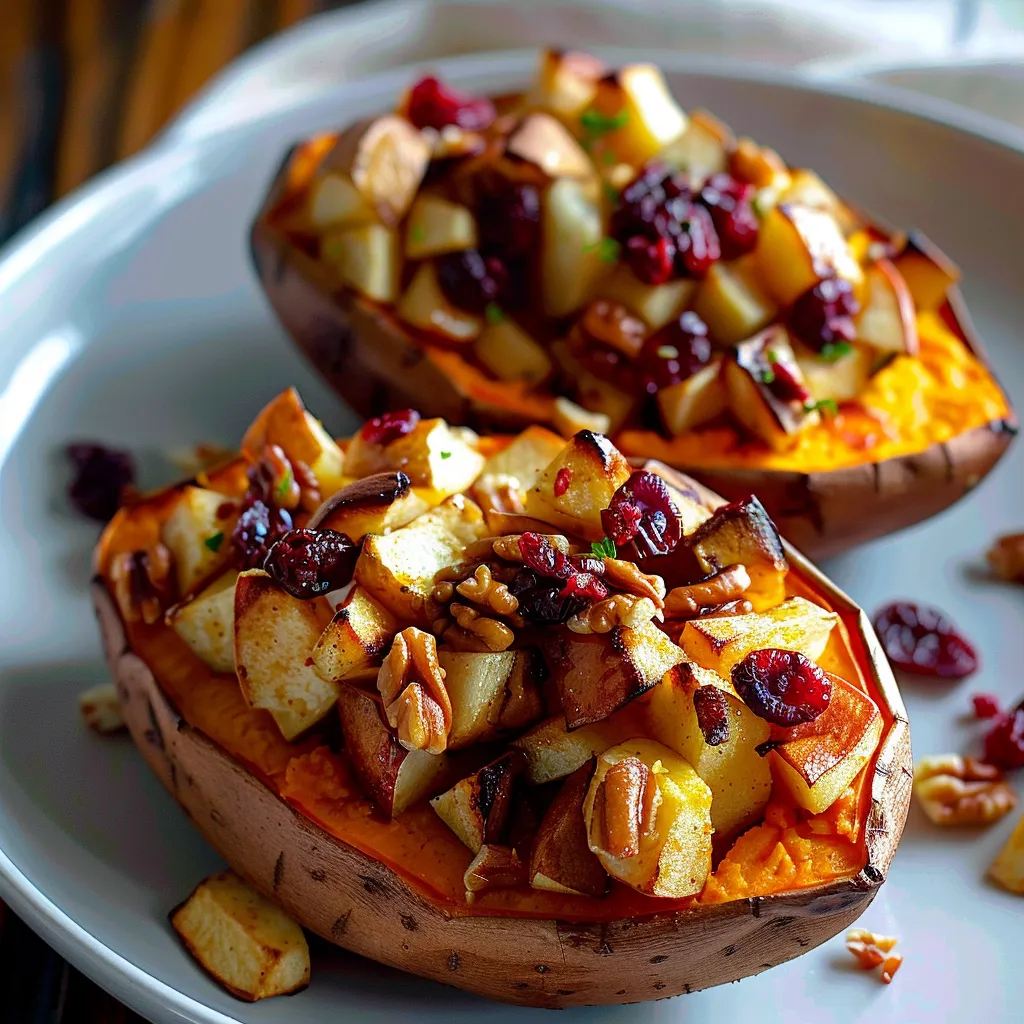 The Cranberry Apple Twice-Baked Sweet Potatoes can be served as a side dish or a main course, making them incredibly versatile. They pair beautifully with roasted turkeys, glazed hams, or even a simple salad.