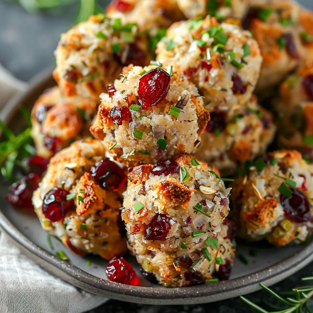 Delight in savory turkey stuffing balls with a cranberry twistperfect for holiday feasts Elevate your celebrations with this festive dish