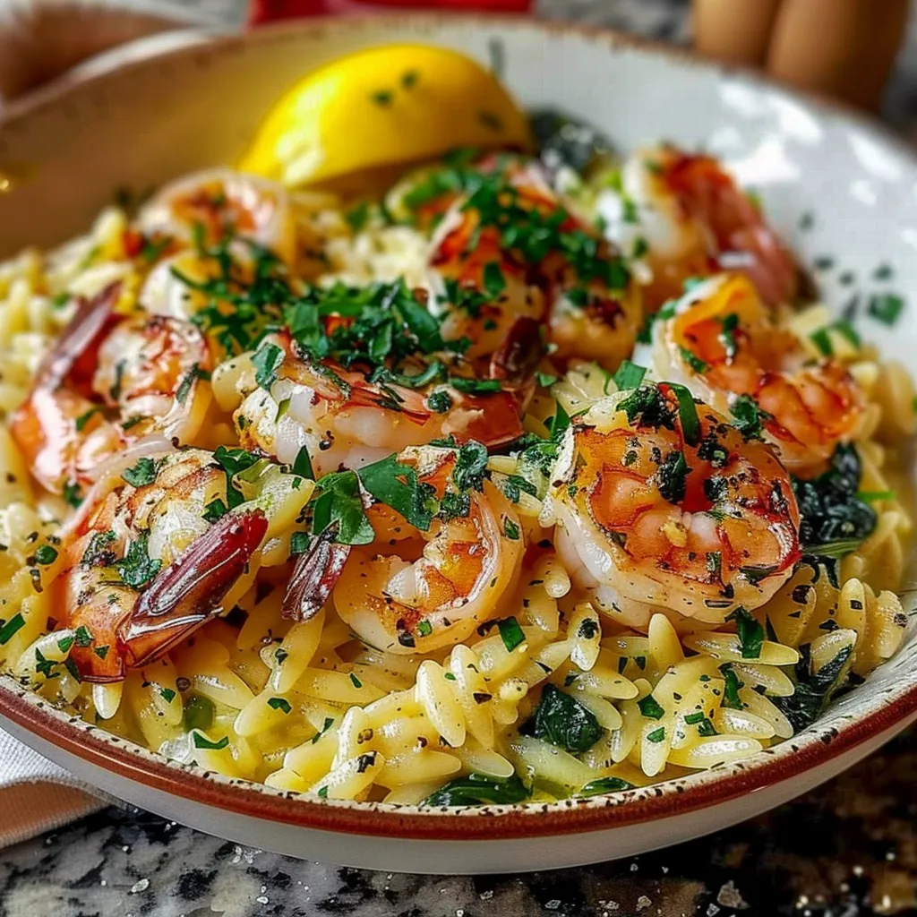 Savor a creamy lemon garlic shrimp orzo dish thats perfect for dinner Quick easy and bursting with flavor for a delightful meal experience