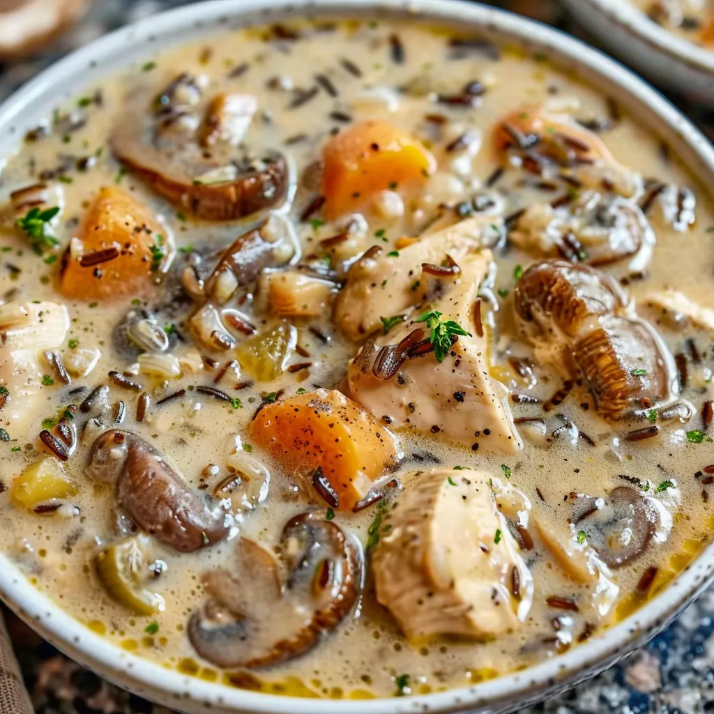 Indulge in this Decadent Creamy Mushroom Chicken Wild Rice Soup Recipe perfect for cozy nights A rich flavorful dish thats easy to prepare