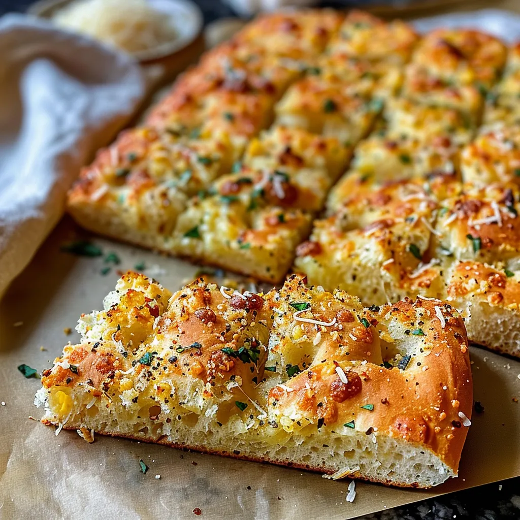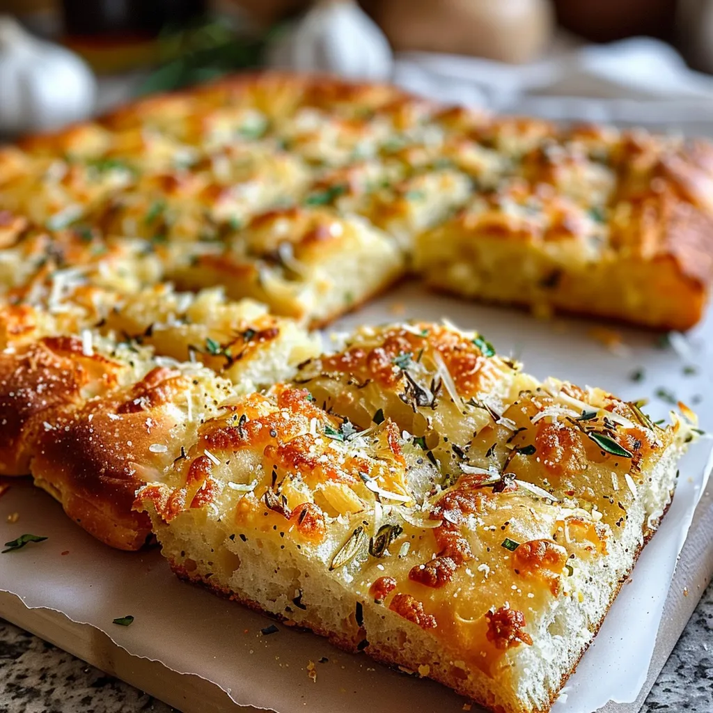 A delightful garlic parmesan focaccia bread recipe that combines rich flavors and a satisfying texture, perfect for any meal or occasion.