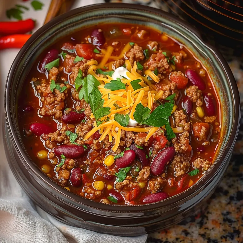 Savor the flavors of slow-cooked chili with ground beef. Perfect for hearty meals, this recipe delivers comfort in every bite. Enjoy your dinner!