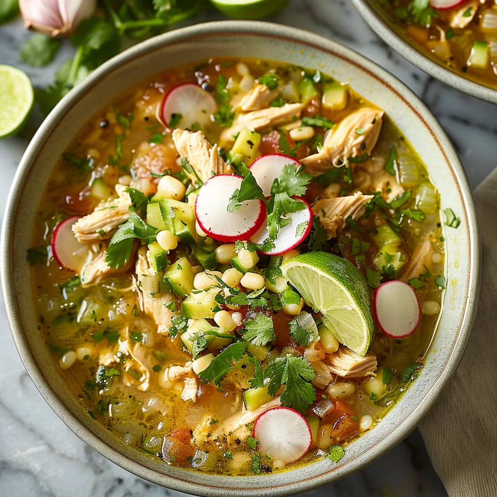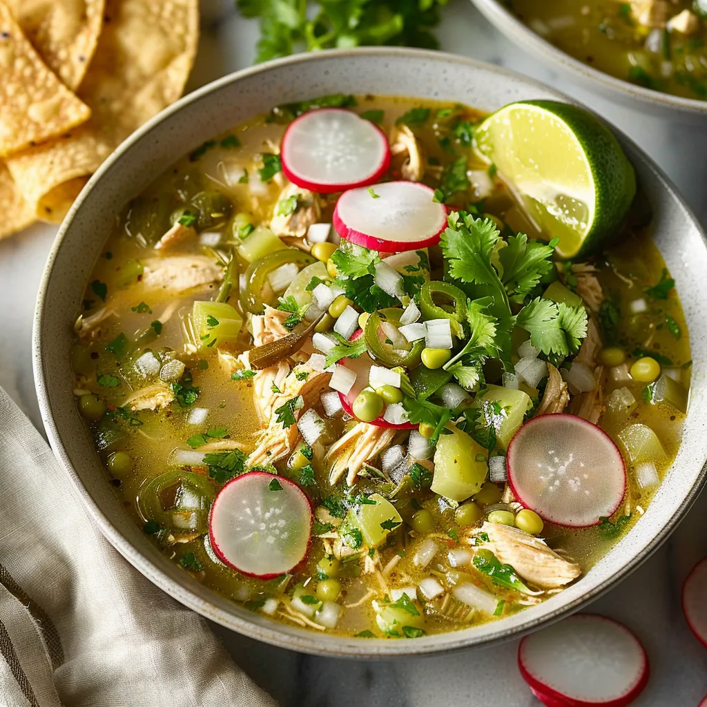 A hearty, comforting soup made with chicken thighs, green salsa, and hominy, perfect for cozy evenings and gatherings.