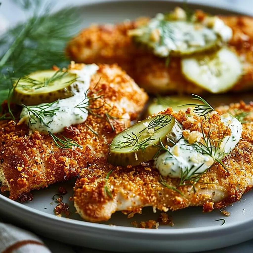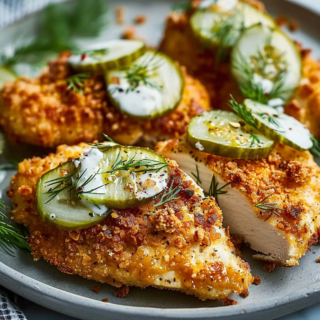 Savor Crunchy Parmesan Chicken with Zesty Dill Pickle Flavor