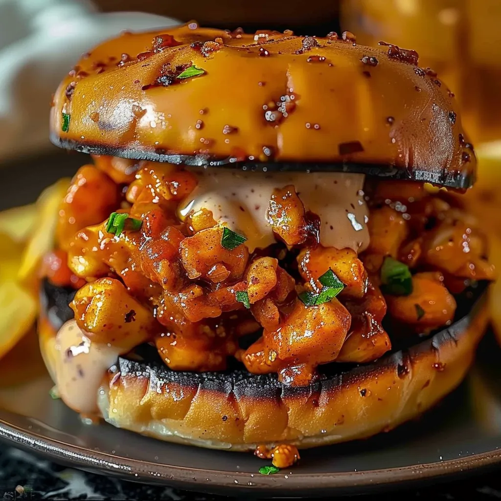 Imagine biting into a juicy sandwich that combines the flavors of smoky paprika, spicy cayenne, and aromatic herbs. The chicken is tender and moist, while the sauce offers a delightful balance of sweetness and heat. Each bite is a symphony of textures and flavors, leaving you craving more. The buttery roll complements the filling perfectly, enhancing the overall experience.