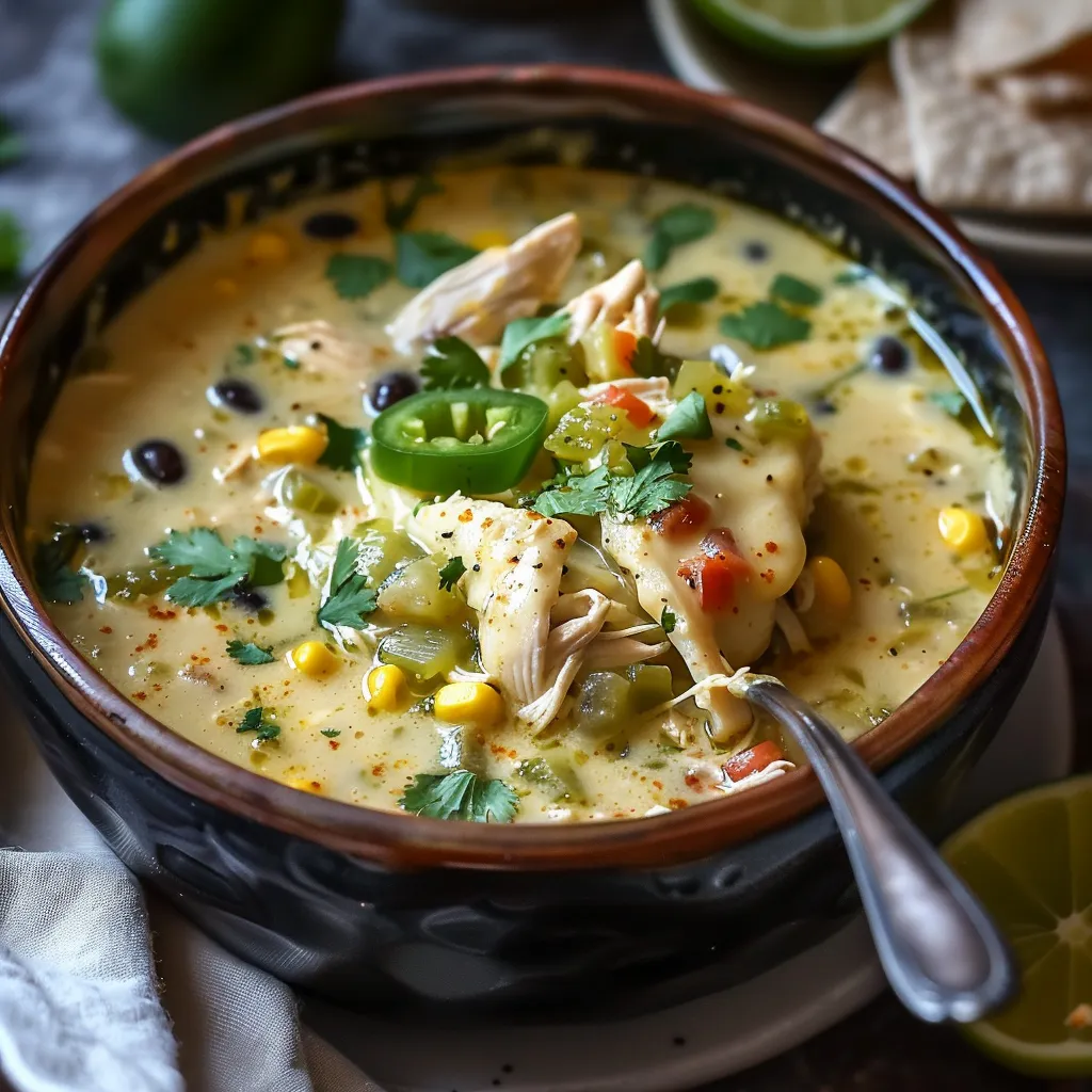 Savor a tasty slow cooker green enchilada chicken soup Perfect for busy days its simple to make and bursting with flavor in every bowl