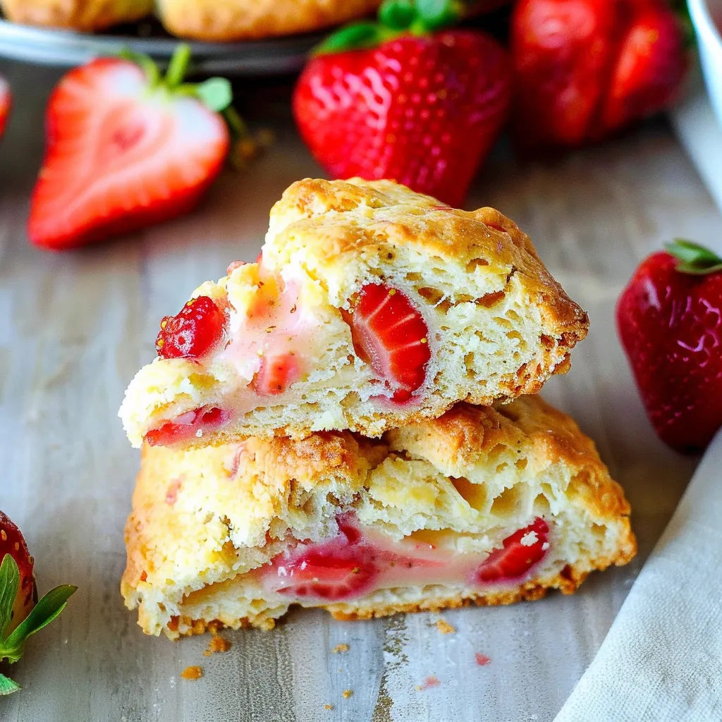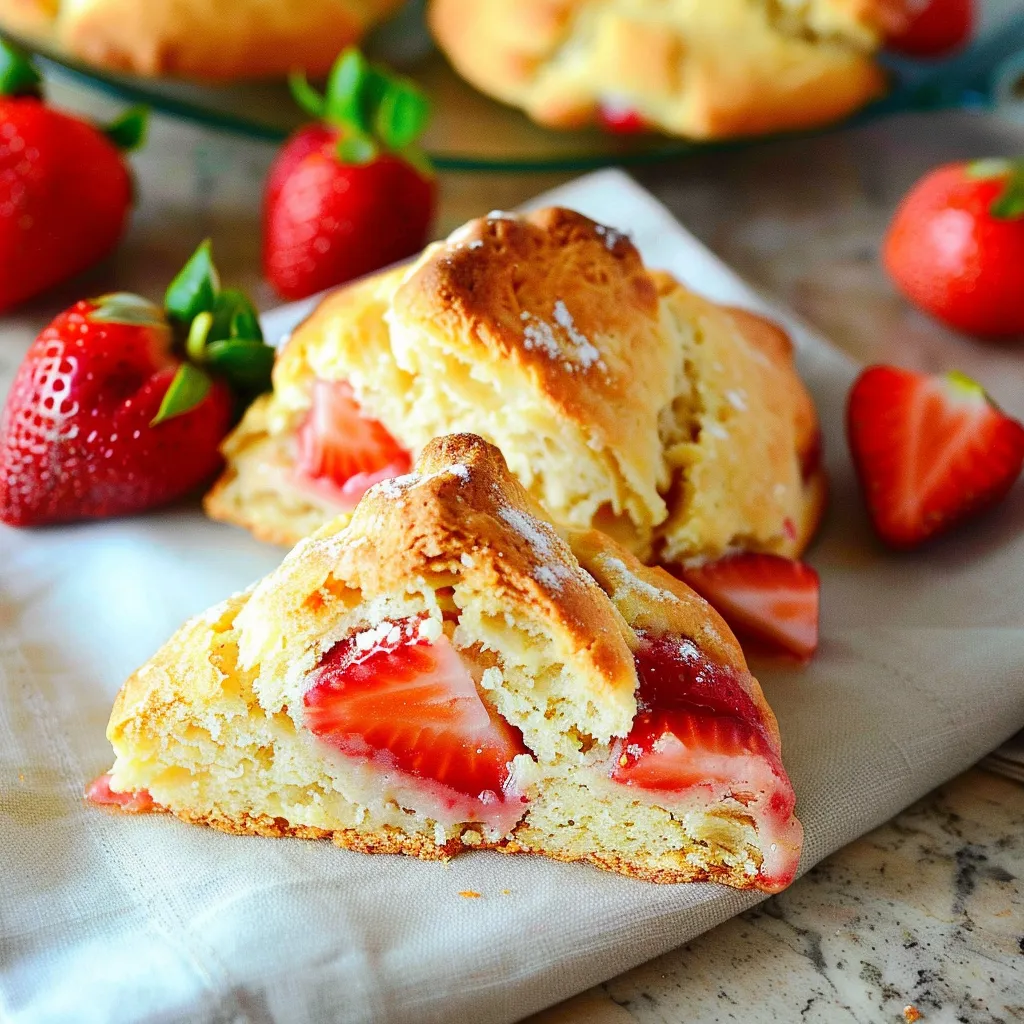 Delicious strawberry scones combining light and flaky texture with fresh strawberries. Perfect for a weekend breakfast or treat.