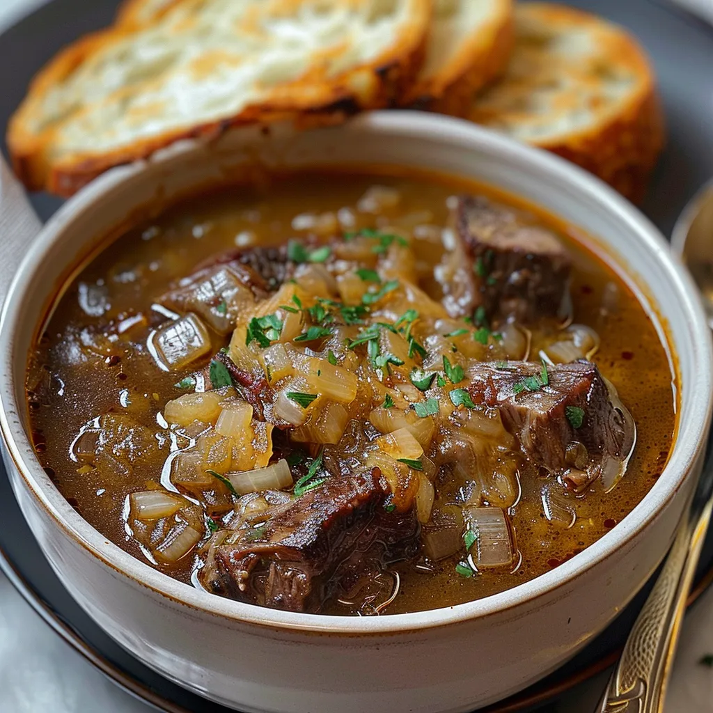 This soup is not just a meal; it’s an experience that warms the soul, ideal for memorable moments shared with loved ones. Plus, the combination of flavors and textures makes this dish a standout—rich, savory beef, sweet onions, and a hint of fresh herbs all meld together in a comforting embrace. So, roll up your sleeves and get ready to impress your family and friends with this delightful recipe!