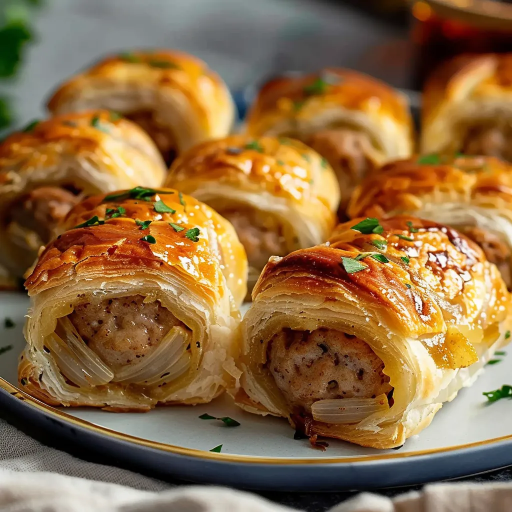 Imagine biting into a perfectly crispy pastry shell, brimming with a luscious filling of caramelized onions and juicy sausage. The sweetness of the beautifully browned onions balances the rich flavors of the sausage, offering a symphony of tastes with every bite. A sprinkle of fresh herbs or a hint of cheese adds to the depth, creating a Southern French culinary landscape that melds seamlessly into these hand-held delights. Each roll invites you to savor the flavors of traditional French cuisine in a new, exciting form.