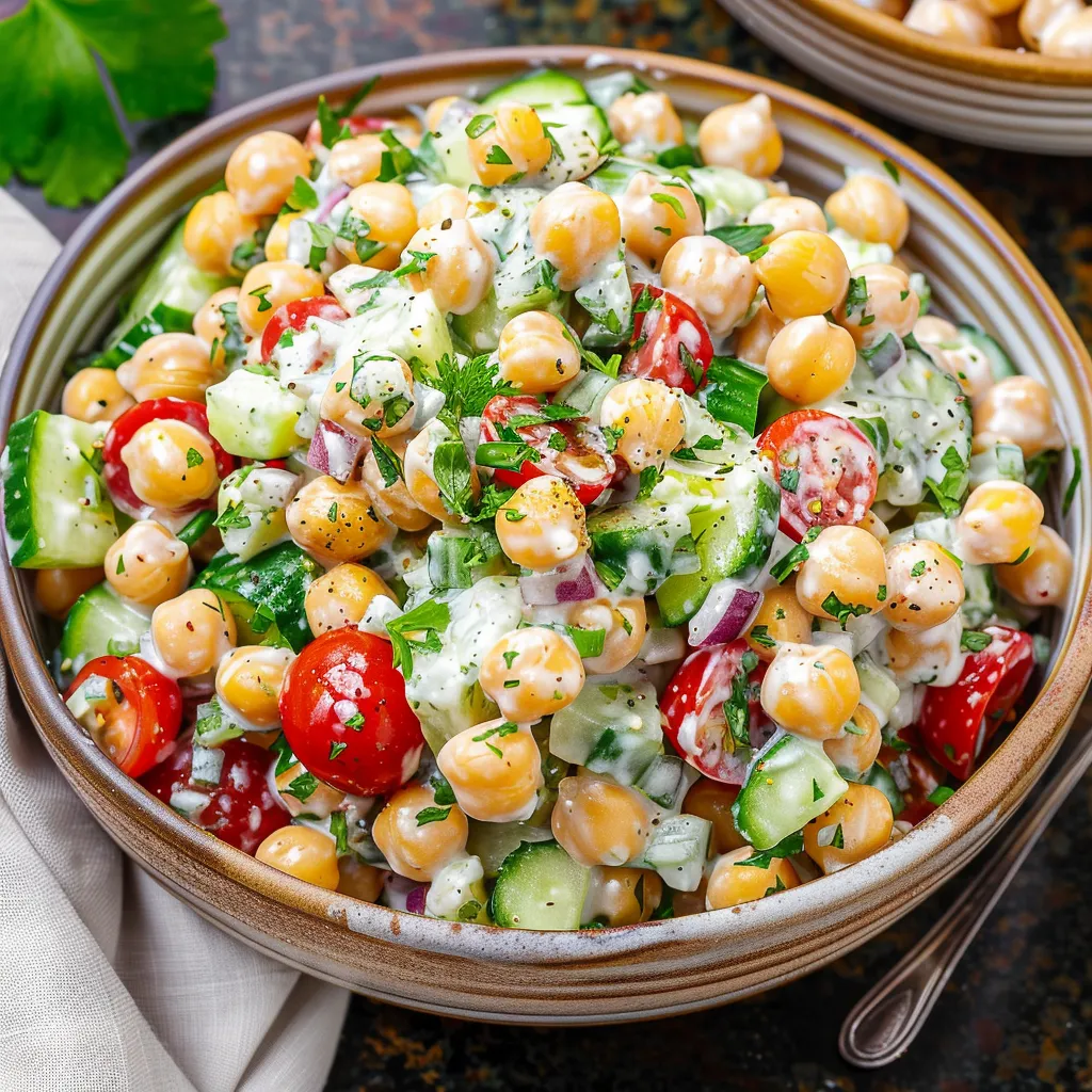 This recipe came into my life during a particularly hot summer, when the thought of cooking felt too much like an Olympic sport. I wanted something that didn’t require me to turn on the oven, something that would make my taste buds do a happy dance while keeping me cool. That’s when I stumbled upon the beautiful simplicity of a Greek chickpea salad. Since then, it’s become a staple—perfect for lazy weekends, picnics in the park, and casual dinner parties. With its crunchy veggies, creamy tzatziki, and chickpeas that pack a protein punch, it’s a bowl of sunshine that never disappoints.