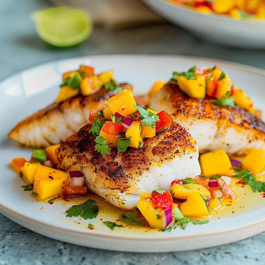 Delight in Grilled Sea Bass paired with zesty Mango-Habanero Salsa. Perfect for seafood lovers seeking bold, fresh flavors in every bite!