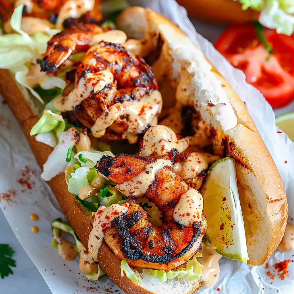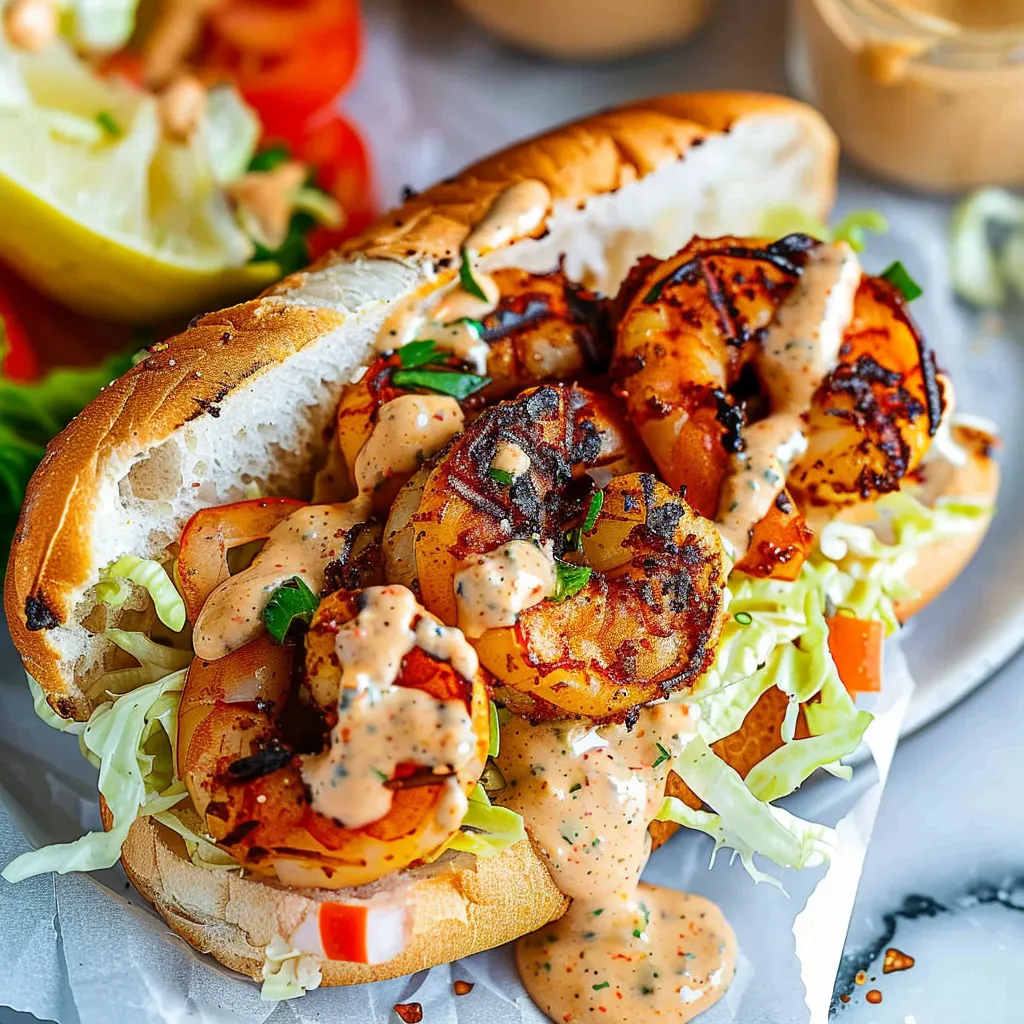 Picture yourself biting into a warm, crispy loaf filled to the brim with plump, grilled shrimp. The first thing you experience is that gentle crunch of the bread, followed by the tender juiciness of the shrimp, seasoned just right with smoky undertones. The spicy remoulade makes its grand entrance next, mingling with the flavors and providing a creamy, tangy contrast that makes every mouthful exciting. It’s a bit like that first warm hug after a long day at work—a comforting and uplifting experience wrapped in a sandwich!