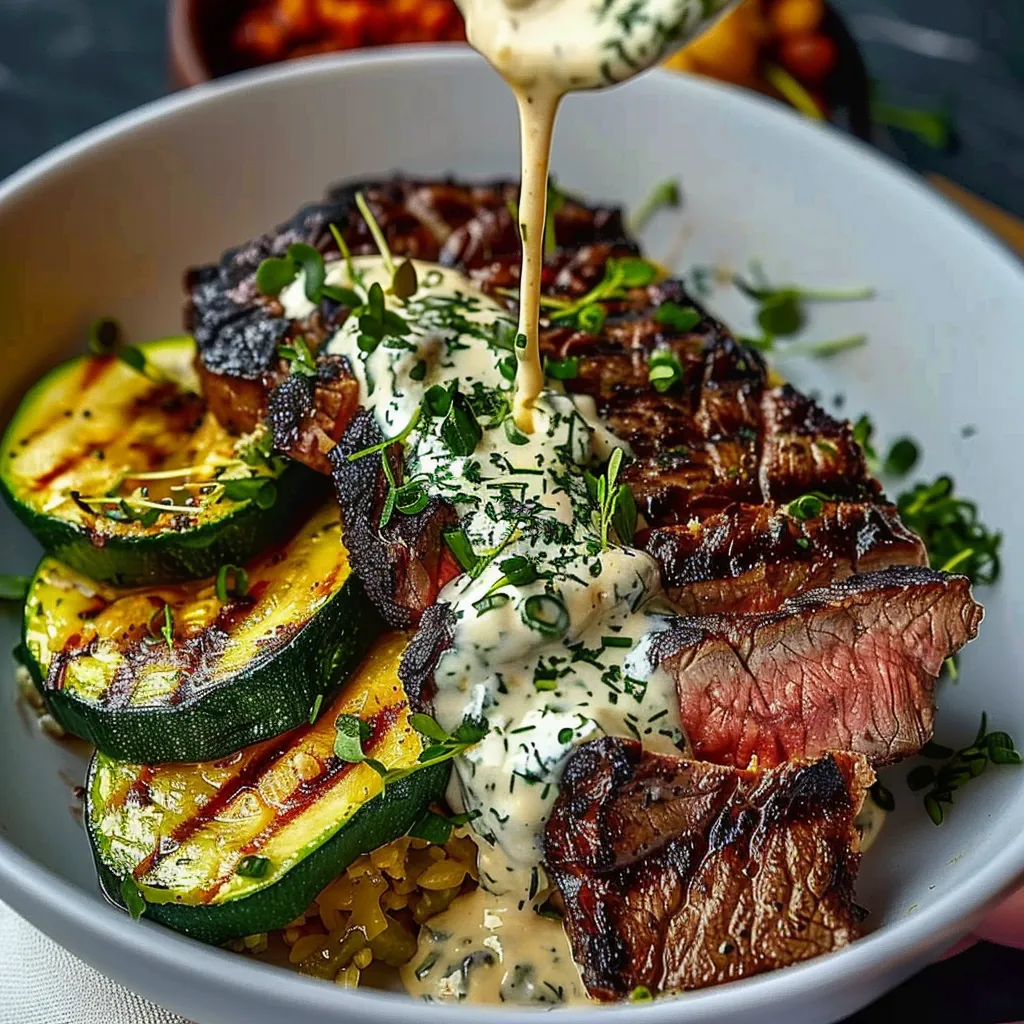 - Slice and serve: Once rested, slice the steak against the grain into thin strips. In a bowl, assemble your steak, grilled zucchini, and a generous drizzle of that creamy sauce. Garnish with chopped parsley or cilantro for a beautiful finish.