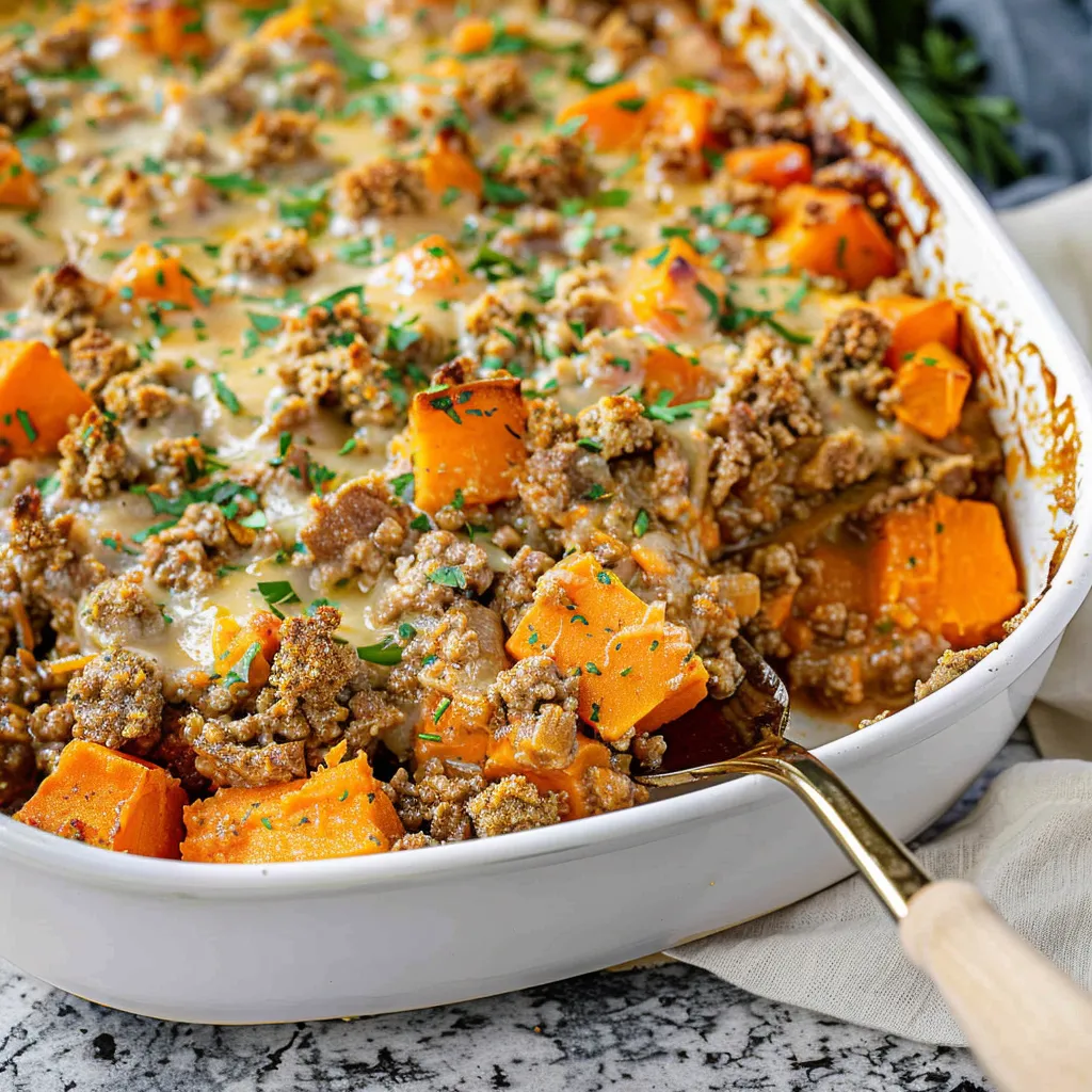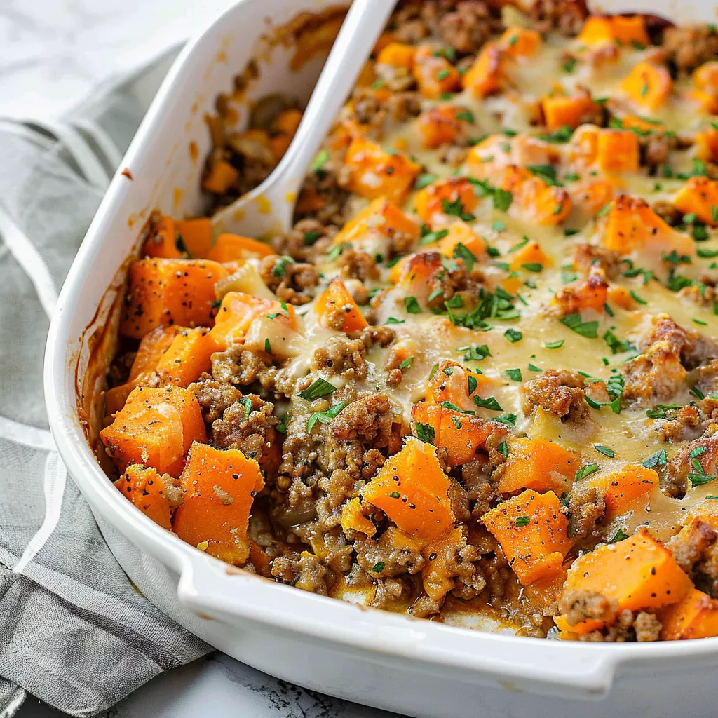 Savor this Delicious Ground Turkey and Sweet Potato Casserole Recipe packed with flavor and easy to make Perfect for weeknight dinners