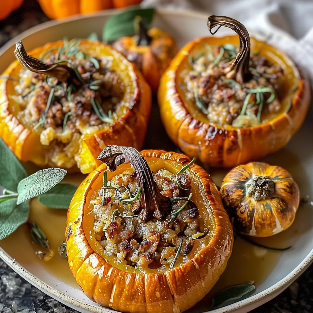 Delight in ground turkey brown butter sage in these unique stuffed pumpkins Perfect for a cozy fall meal packed with flavor and warmth