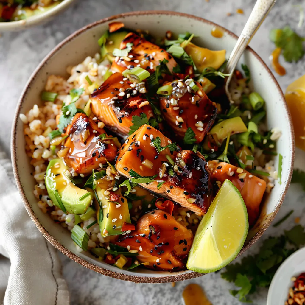 This recipe is super flexible! You might want to switch things up by trying different glazes. How about a maple syrup replacement for a deeper sweetness? Or switch the salmon for chicken or tofu for a non-seafood option. You could even turn this into a sushi bowl with sushi rice, avocado, and nori! Get creative with your veggies—anything from cucumbers to shredded carrots can work wonders. The possibilities are endless!
