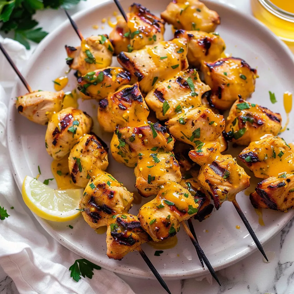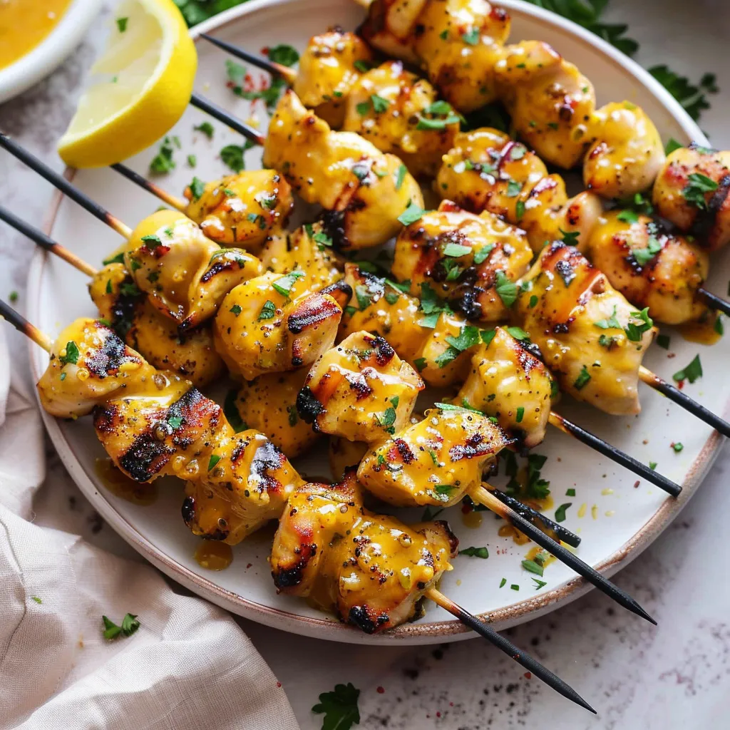 Succulent chicken skewers coated in honey mustard flavor create a mouthwatering dish perfect for grilling enthusiasts and easy weeknight dinners.