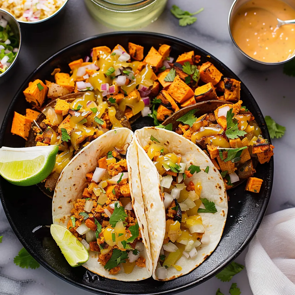 Imagine taking that first bite of a warm taco enveloped in a corn tortilla, only to have the creamy sweet potato filling mingle with the spices and toppings in perfect harmony. The experience is akin to wrapping yourself in a cozy blanket on a rainy day—a comforting hug for your taste buds! The sweet potatoes are mildly sweet yet savory, while cumin and coriander provide a warm, earthy undertone. And don’t get me started on the tangy lime yogurt drizzled on top! Each component plays off the other, giving you flavor explosions that dance on your palate, making you reach for just one more.