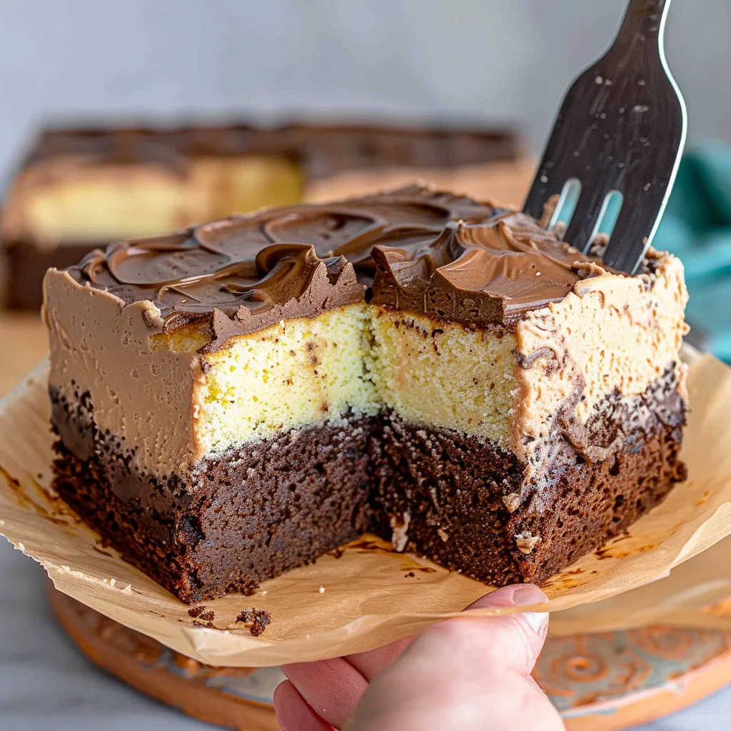 - Layering: Now, for the best part! Pour half of the chocolate cake batter into a greased 9×13 inch baking dish. Dollop spoonfuls of the cream cheese mixture over the batter, then pour the remaining chocolate batter on top. Gently swirl a knife through to create a marbled effect.