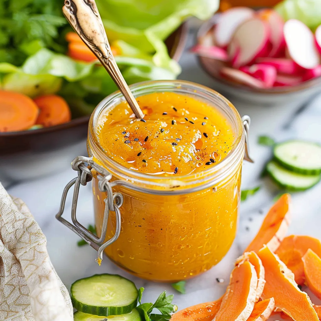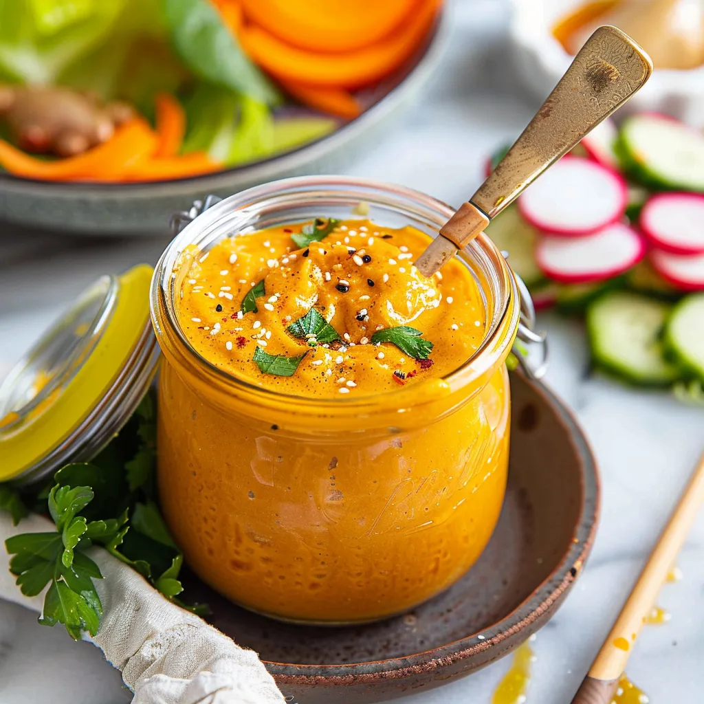 A vibrant dressing made with carrots and ginger that elevates ordinary salads into a delicious culinary experience.