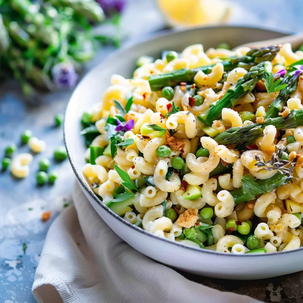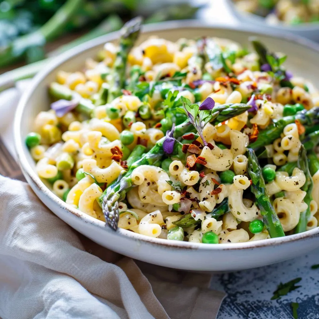 A vibrant and flavorful Lemon Dijon Asparagus and Pea Macaroni Salad that is perfect for springtime gatherings or a cozy meal at home.