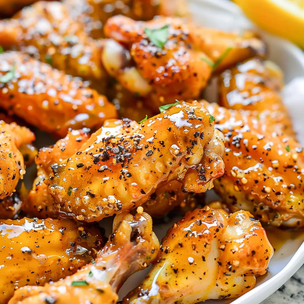 Imagine biting into a succulent, crispy chicken wing just out of the oven. The first sensation is a satisfying crunch as your teeth break through the skin, followed by juicy, tender meat that practically dances with flavor in your mouth. The bright zing of lemon hits you, wrapping around the warmth of pepper, creating a delightful balance that is so refreshing, it’s like a mini-vacation in every bite. Whether paired with a cool dip or enjoyed on their own, the flavor experience is memorable and utterly delicious—truly a reminder of why I love cooking. Each wing is a celebration, a blend of savory and citrusy goodness that’s perfect for any occasion.