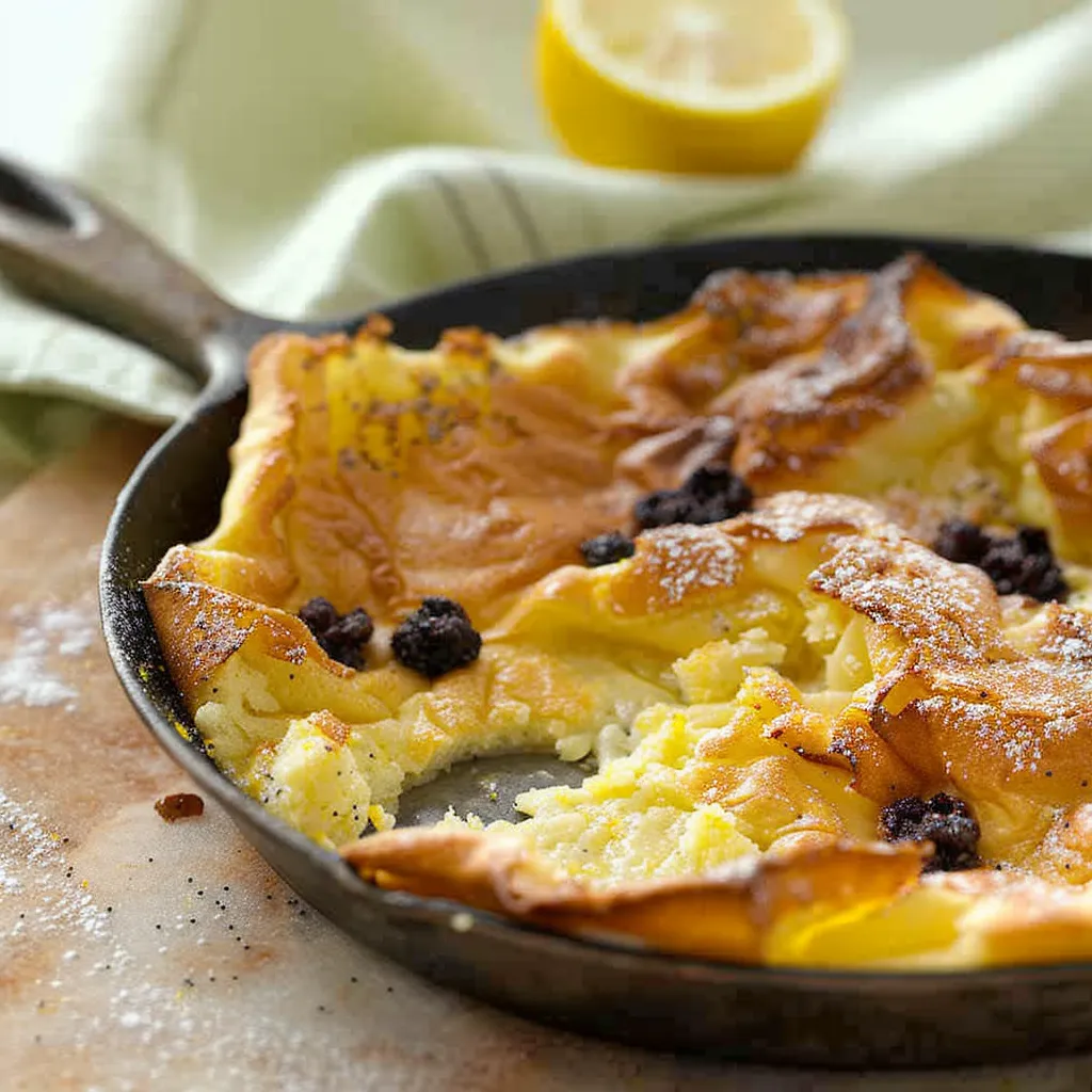 A delightful Lemon Poppy Seed Dutch Baby that transforms any morning into an extraordinary experience with its fluffy texture and zesty flavor.