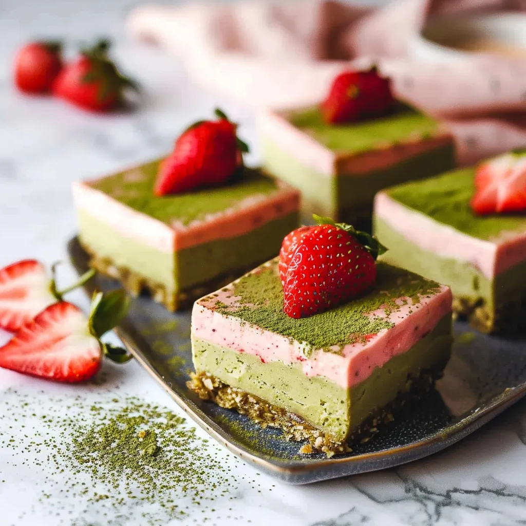 Savor the rich flavors of matcha and strawberry in creamy, delicious bars—your new favorite dessert that satisfies all cravings. Perfect for any occasion!
