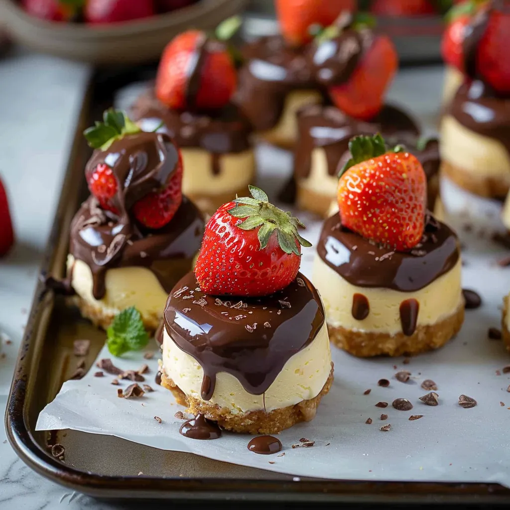 Irresistible Mini Cheesecakes Topped with Chocolate Strawberries