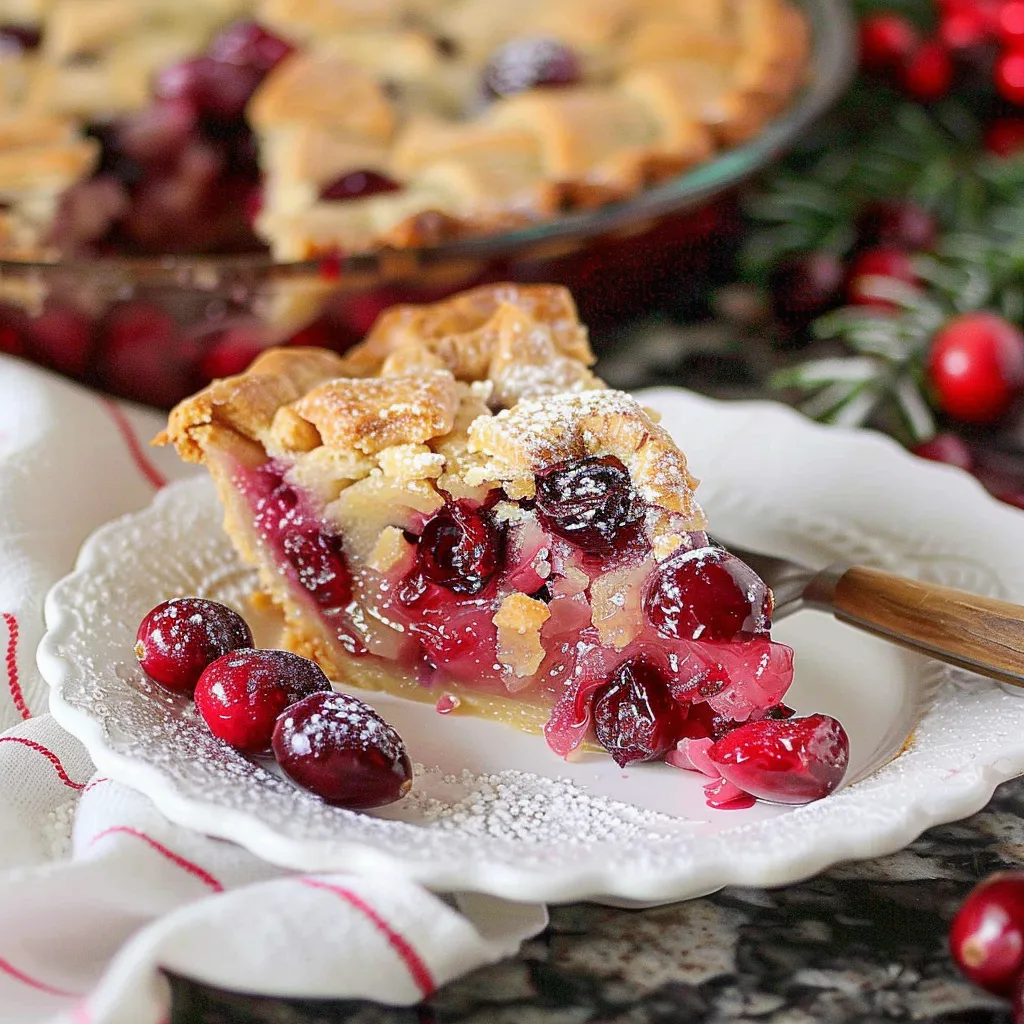 A delightful holiday dessert featuring a perfect balance of tart cranberries and sweet flavors, nestled in a flaky crust.