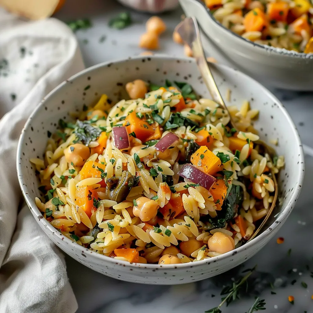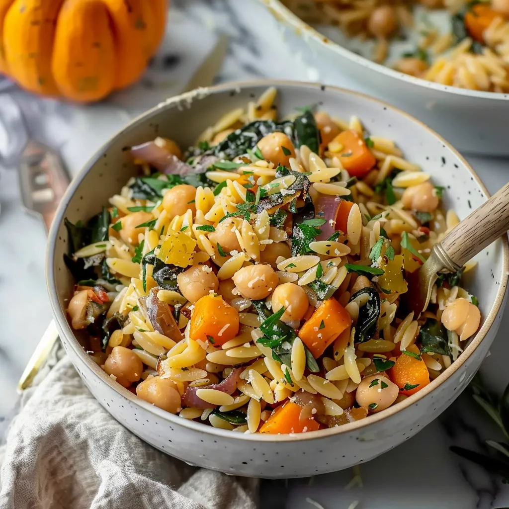 Hearty One Pot Fall Veggie Orzo Chickpeas Recipe to Delight